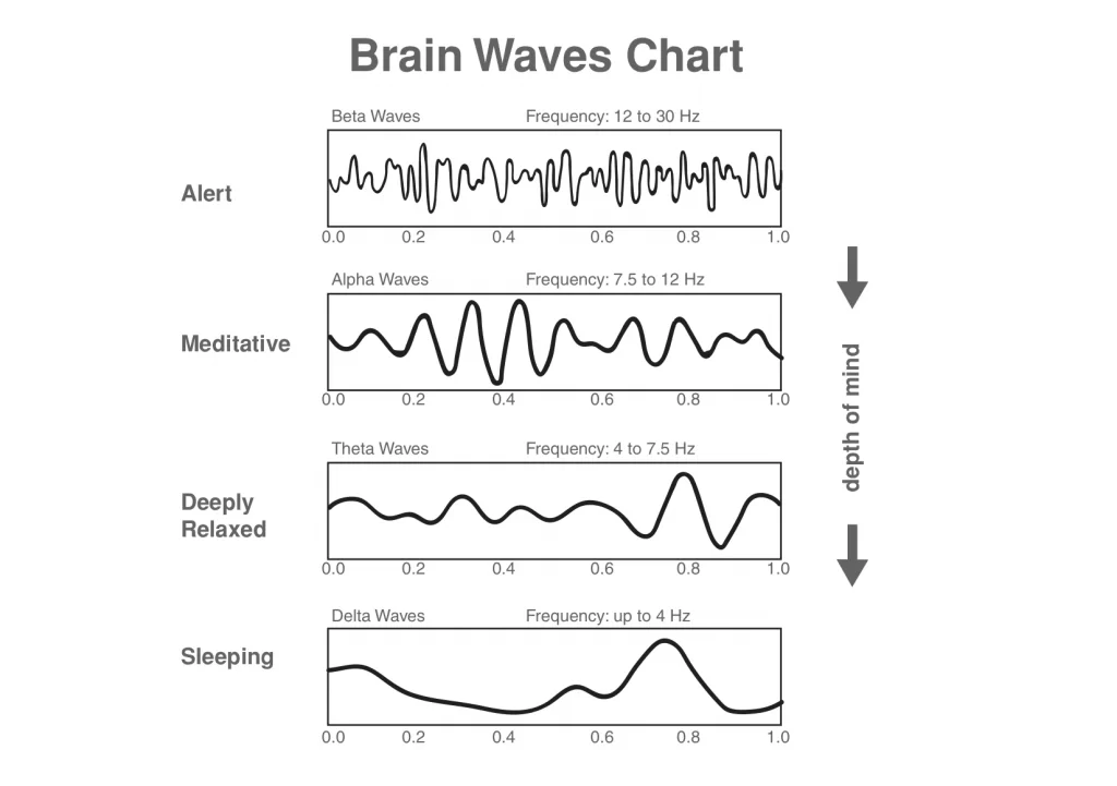 - This, in turn, lowers the brainwave pattern further and induces further relaxation and a feeling of wellbeing.